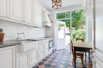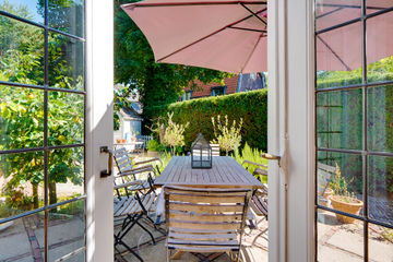 Vanuit de hal bereikt u tevens de klassieke keuken, deze is voorzien van diverse inbouwapparatuur. Vanuit de keuken heeft men toegang tot de zonnige tuin met veel privacy.
