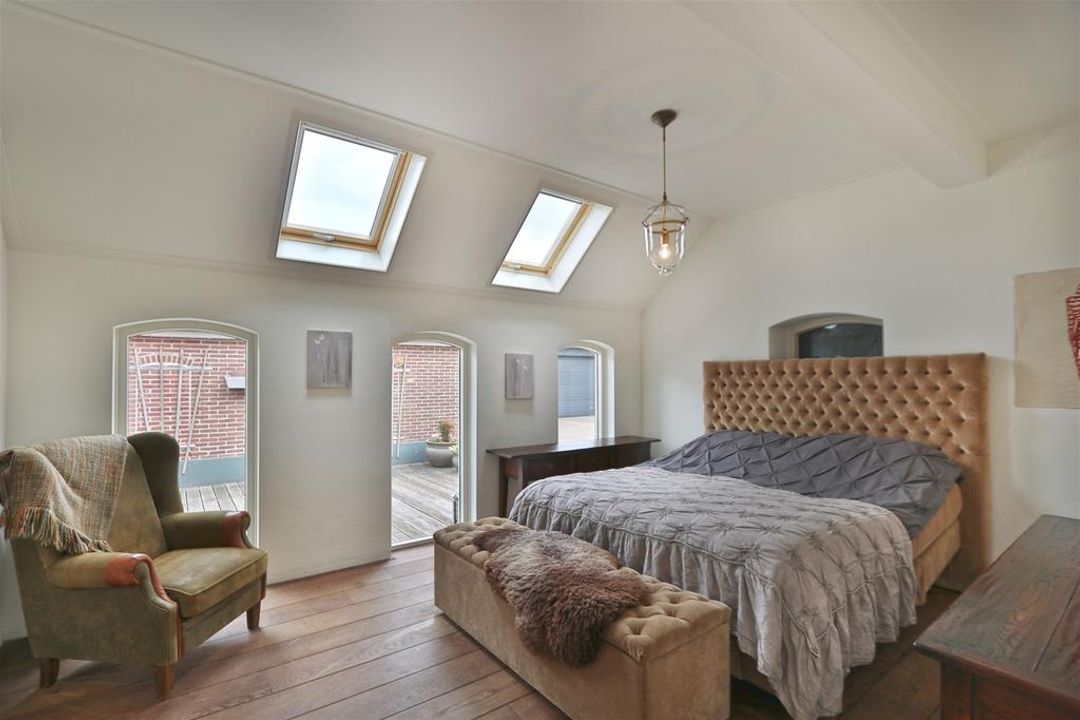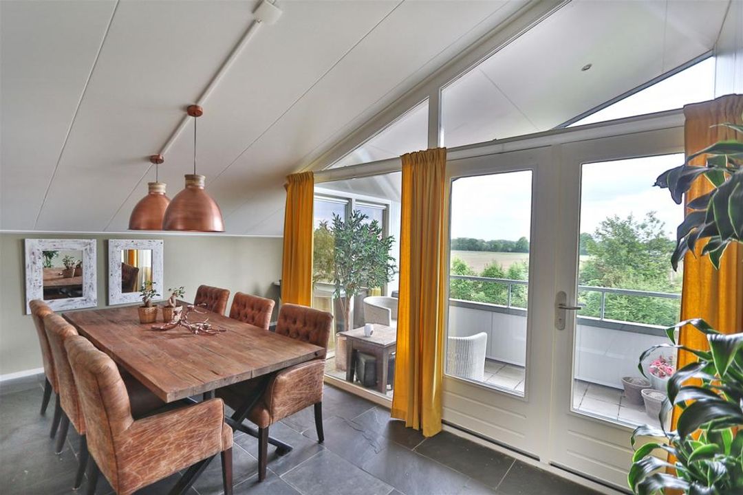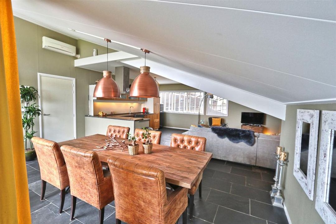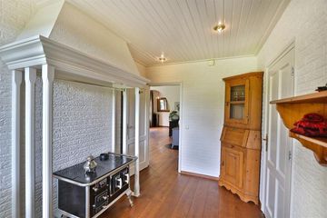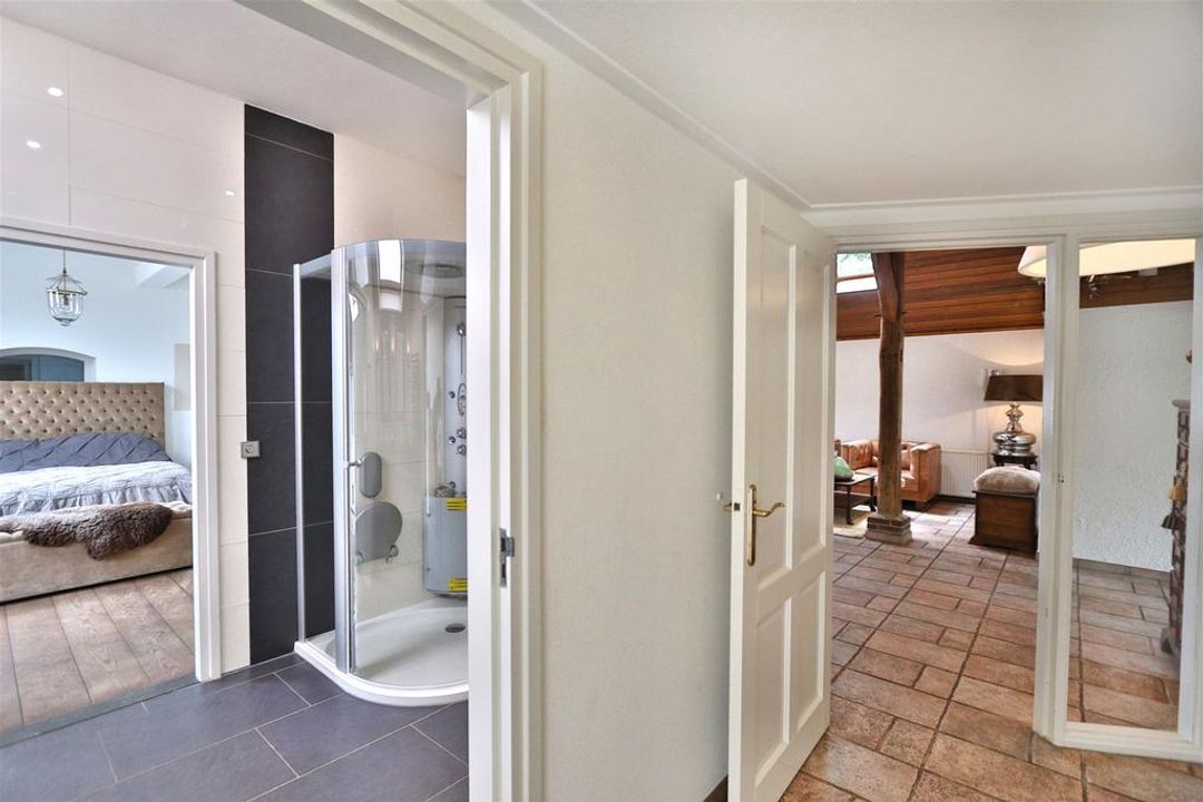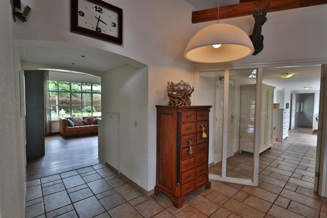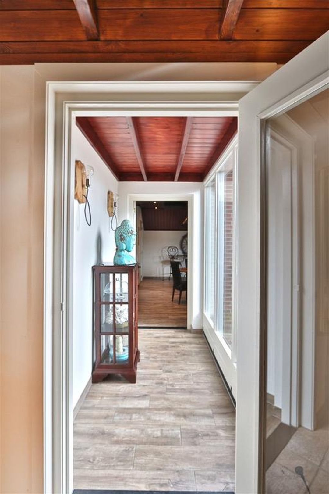 De sfeervolle riante living is voorzien van een houthaard met luchtcirculatiesysteem, tegelvloer en vestibule met buitendeur. In de woonkamer zijn authentieke elementen gebruikt en het hoge plafond, afgewerkt met houtdelen, geeft het geheel karakter. Vanuit de woonkamer is de gang en slaapkamer op begane grond te bereiken.