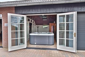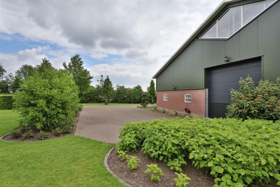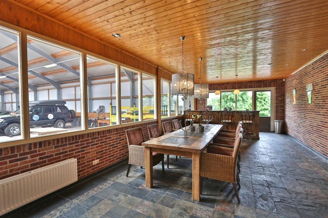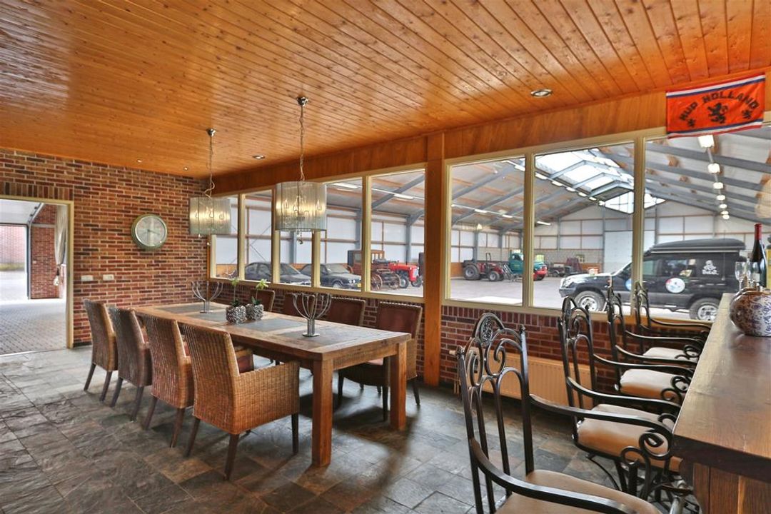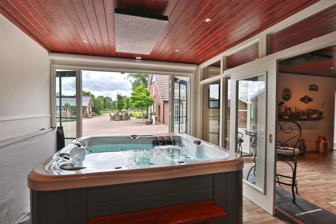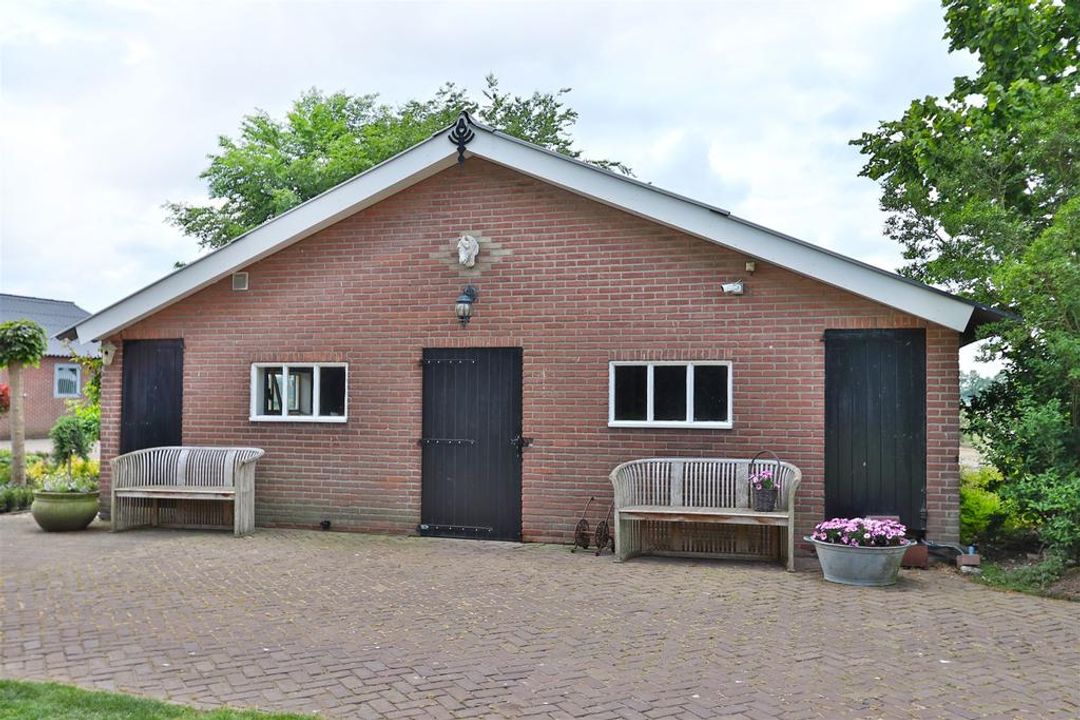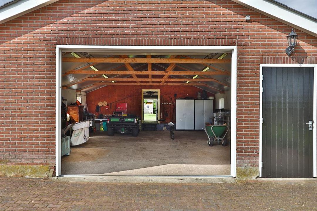Via bijgebouw I middels een tussenportaal is bijgebouw II te bereiken. In bijgebouw II is een wellness met baropstelling (v.v. spoelbak, 2x koelkast), toilet, infrarood sauna en jacuzzi aanwezig. In de wellness kan de dubbele deur opengezet worden, zodat er in de jacuzzi genoten kan worden van de buitenlucht. De wellness heeft een eigen opgang. In hetzelfde bijgebouw is de dubbele garage met opslag aanwezig. De garage heeft een 2-tal elektrische garagedeuren en is voorzien van een betonnen vloer. Achter de garage nabij de stallen bevindt zich de overdekte mestvaalt.