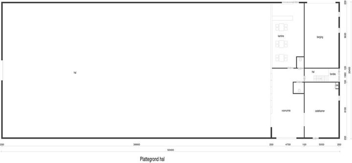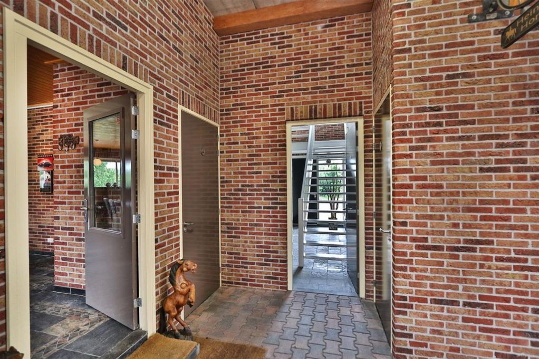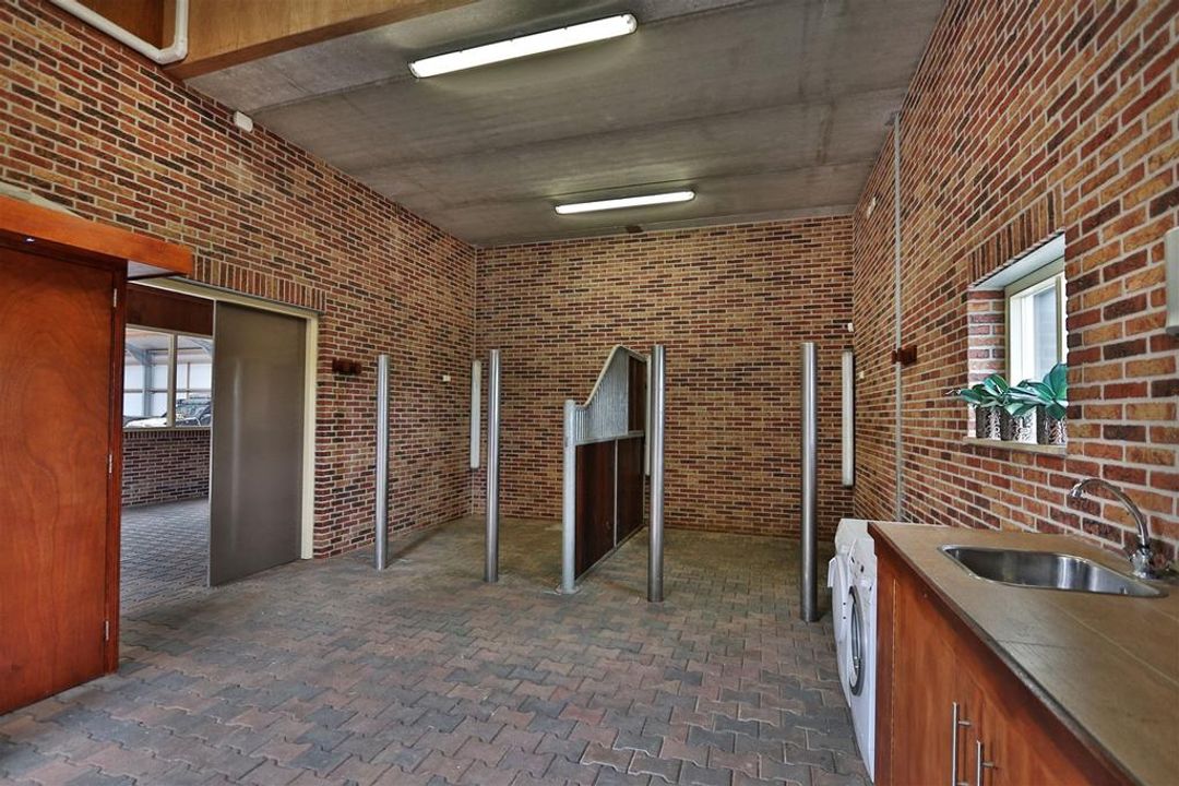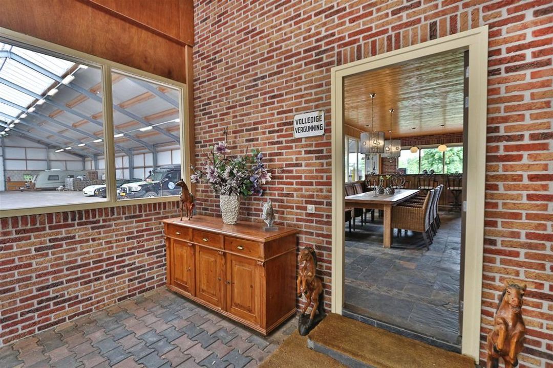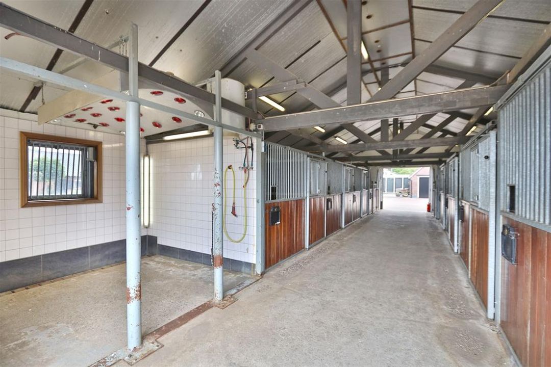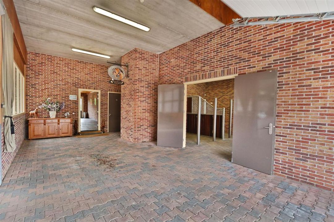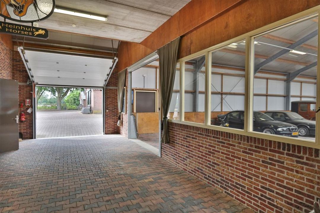 De binnenrijhal heeft een afmeting van 20x50m en is voorzien van muur en dakisolatie, automatische overhead deuren en binnenrijbaan van 20x40m met Eb & Vloed bodem. De bodem is momenteel bestraat met H-profielklinkers en leent zich daardoor voor meerdere doeleinden. Het dak in de binnenrijhal is voorzien van een lichtstraat voor natuurlijke lichtinval. In de hal is tevens een foyer/kantine aanwezig met zicht over de binnenrijhal, centrale hal met toegang tot de kantine (eigen opgang), gastenverblijf, poetsplaatsen, toiletgroep en camperstalling. De poetsruimte is voorzien van een 2-tal poetsplaatsen met diep verankerde rvs-palen, keukenblok, witgoedaansluitingen en warm water.