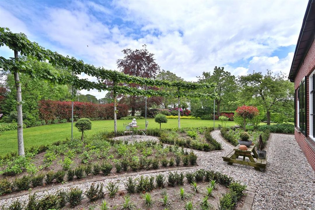 Het perceel is volledig verhard en toegankelijk middels een 2-tal elektrische poorten. Vanaf de openbare weg biedt de elektrische sierlijke poort middels een imposante verlichte oprijlaan toegang tot de woning. Langs de oprijlaan is de siertuin gelegen met vijver en terras. Aan de voorzijde van het perceel ligt de onder architectuur aangelegde voortuin.