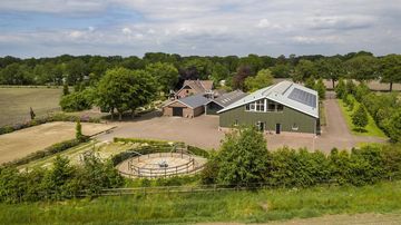 Schitterend paardendomein gelegen op een eigen landgoed van ruim 6,5ha met alle luxe voor de paarden en uzelf. De paardenhouderij ligt nabij de steden Hengelo, Enschede en de Duitse grens en is voorzien van een buitenrijbaan van 20x40m, riant gastenverblijf, foyer/kantine, zadelkamer, overkapte mestvaalt, was-/poetsplaatsen, binnenrijbaan 20x40m, 9 stallen (uitbreiding mogelijk), trainingsmolen en ca. 5,4ha weide. Het landhuis is voorzien van een sfeervolle living, zitkamer, woonkeuken, 4 slaapkamers en 2 badkamers. Tevens aanwezig een wellness met baropstelling, multifunctionele ruimte en dubbele garage met opslag.